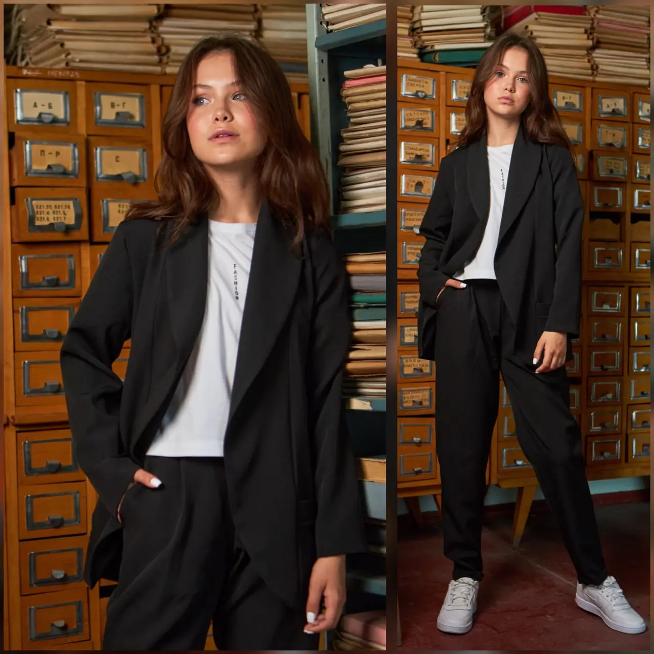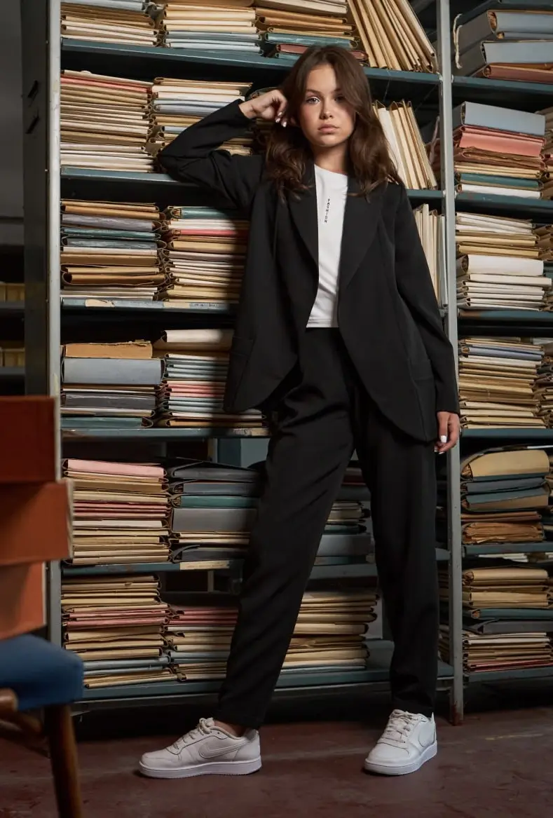 1 250 грн 62 грн Розмір одягу (ріст) 128 134 Розмір одягу (міжнародний) M Штани Костюми та комплекти для дівчат Костюми шкільні для дівчат Бренд H&M Колір Чорний Весна Осінь Матеріал Костюмка Увімкнено